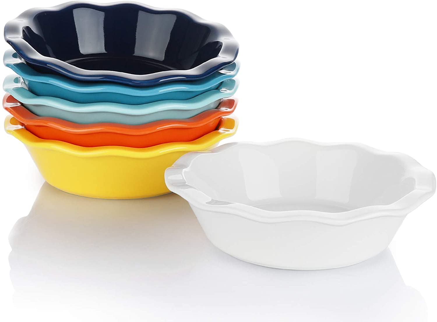 Best Pro: Sweese 521.002 Porcelain, Mini Pie Pan Set, 6.5 Inch - 12 oz Individual Pie Plate, Non-Stick Pie Dish, Round Pie Tins with Ruffled Edge, set of 6, Hot Assorted Color