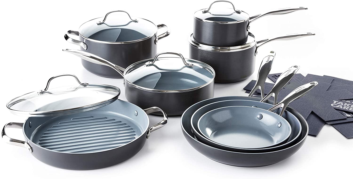 Best Pro: GreenPan Valencia Pro Hard Anodized Healthy Ceramic Nonstick 16 Piece Cookware Pots and Pans Set, PFAS-Free, Induction, Dishwasher Safe, Oven Safe, Gray